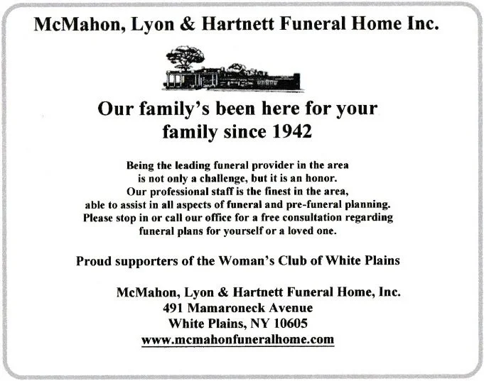 The following organizations and businesses make it possible for the Woman’s Club of White Plains to continue making a difference in our community. We greatly appreciate their ongoing support.